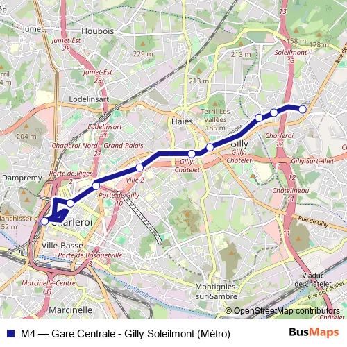 Click here to view the nearest M4 - Gare Centrale - Gilly Soleilmont (Métro) metro stop.