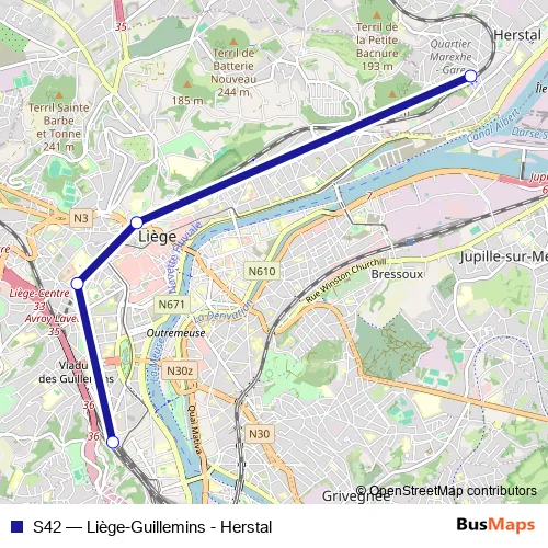See why over 2 million users trust and consider busmaps.com as the best public transport website. busmaps gives you Liege Rail Services suggested routes, real-time bus tracker, line route maps in Liege, and helps to find the closest S42 rail stops near you. No internet available? Download an offline PDF map and bus schedule for the S42 rail to take on your trip.