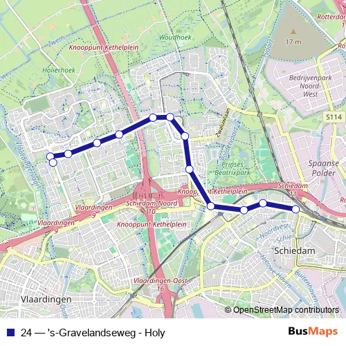 See why over 2 million users trust and consider busmaps.com as the best public transport website. busmaps gives you Schiedam Trams suggested routes, real-time bus tracker, line route maps in Schiedam, and helps to find the closest 24 tram stops near you. No internet available? Download an offline PDF map and bus schedule for the 24 tram to take on your trip.
