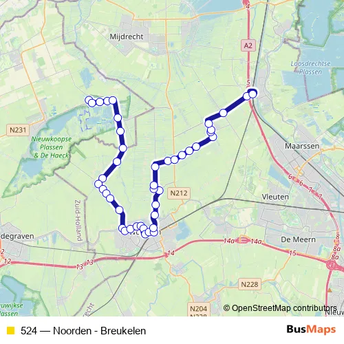 See why over 2 million users trust and consider busmaps.com as the best public transport website. busmaps gives you Utrecht Buses suggested routes, real-time bus tracker, line route maps in Utrecht, and helps to find the closest 524 bus stops near you. No internet available? Download an offline PDF map and bus schedule for the 524 bus to take on your trip.