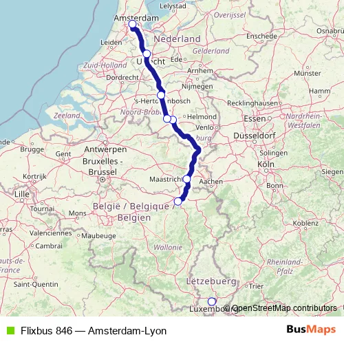 Click here to view the nearest Flixbus 846 - Amsterdam-Lyon bus stop.
