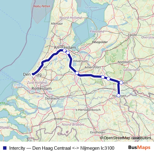 Click here to view the nearest Intercity - Den Haag Centraal <-> Nijmegen Ic3100 rail stop.