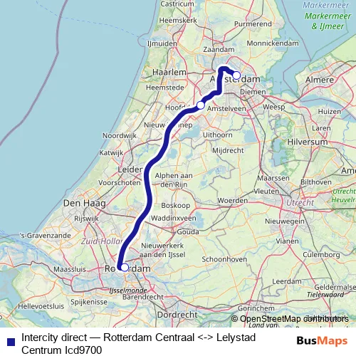 Click here to view the nearest Intercity direct - Rotterdam Centraal <-> Lelystad Centrum Icd9700 rail stop.