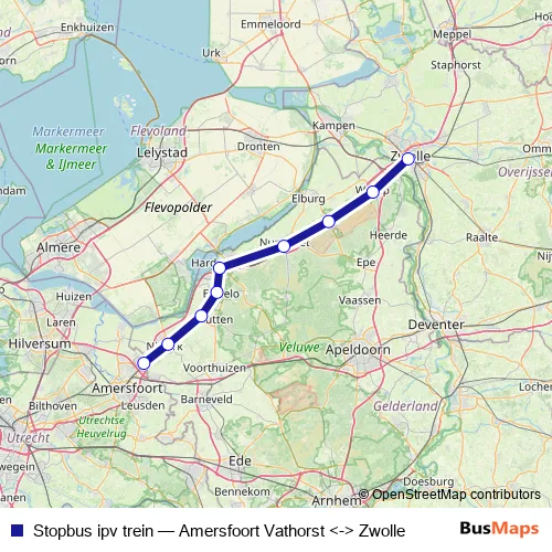 Click here to view the nearest Stopbus ipv trein - Amersfoort Vathorst <-> Zwolle bus stop.