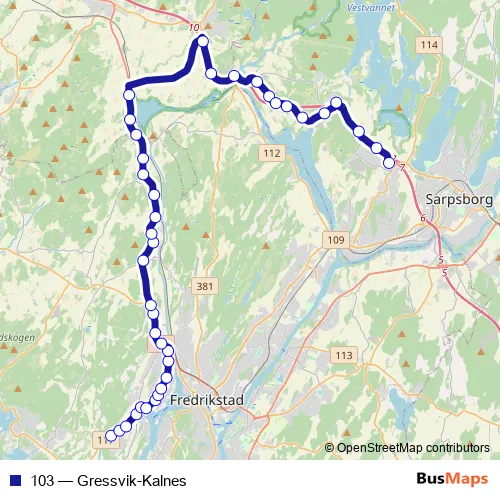 See why over 2 million users trust and consider busmaps.com as the best public transport website. busmaps gives you Fredrikstad Buses suggested routes, real-time bus tracker, line route maps in Fredrikstad, and helps to find the closest 103 bus stops near you. No internet available? Download an offline PDF map and bus schedule for the 103 bus to take on your trip.