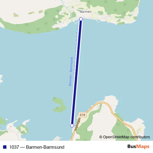The first stop of the 1037 ferry route is Barmen kai and the last stop is Barmsund kai. 1037 (Barmen-Barmsund) is operational during hver dag.