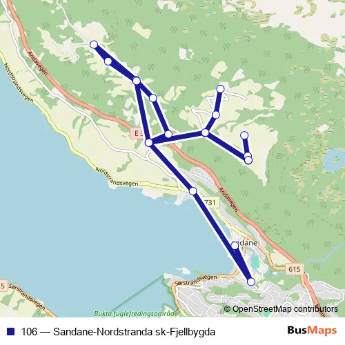 Bus 106 - Sandane-Nordstranda sk-Fjellbygda in Sandane: Stops & Timetable