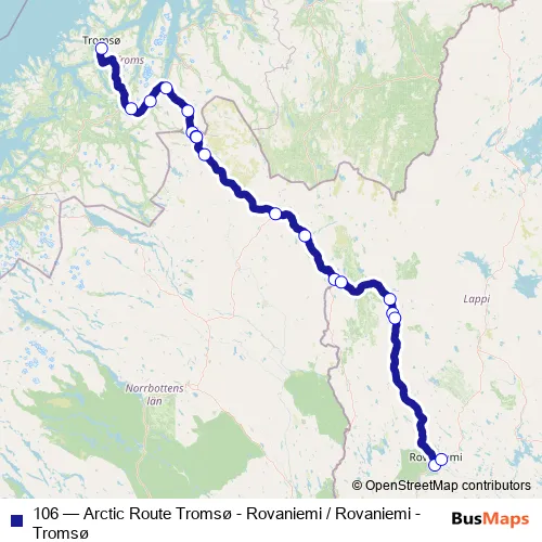 Bus 106 - Arctic Route Tromsø - Rovaniemi / Rovaniemi - Tromsø Schedule in Kittilae