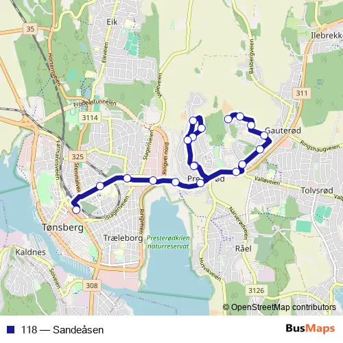 Bus 118 - Sandeåsen in Tonsberg: Stops & Timetable