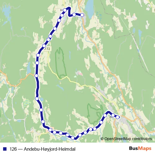 Click here to view the nearest 126 - Andebu-Høyjord-Heimdal bus stop.