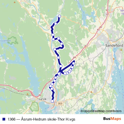 Bus 1366 - Åsrum-Hedrum skole-Thor H.vgs: Full Schedule in Larvik
