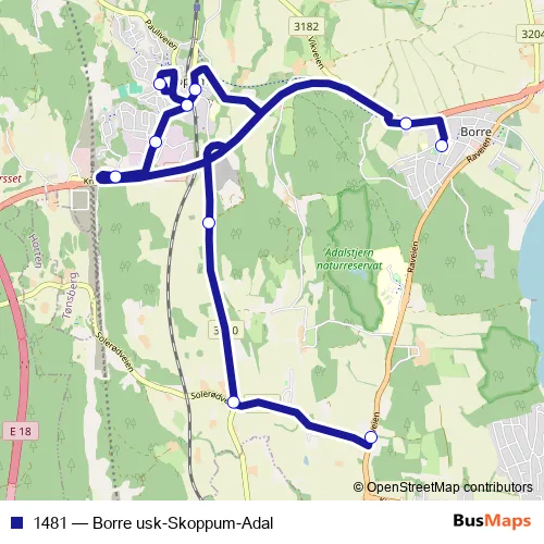 The first stop of the 1481 bus route is Borre ungdomsskole and the last stop is Ra. 1481 (Borre usk-Skoppum-Adal) is operational during hver dag.