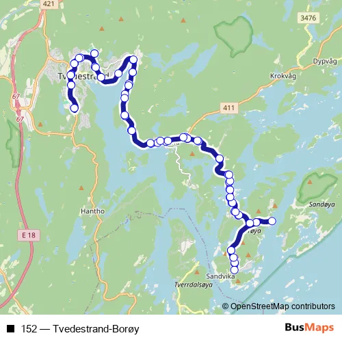 Click here to view the nearest 152 - Tvedestrand-Borøy bus stop.