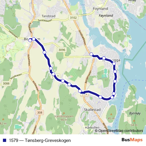 Bus 1579 - Tønsberg-Greveskogen: Full Schedule in Borgheim