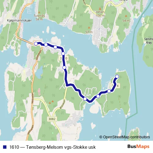 Click here to view the nearest 1610 - Tønsberg-Melsom vgs-Stokke usk bus stop.