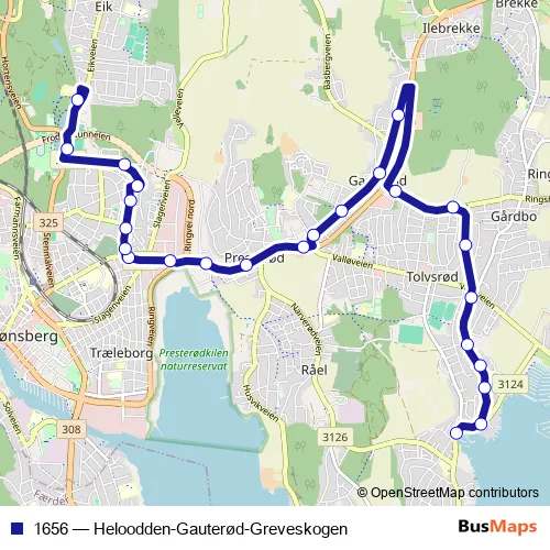 Greveskogen vgs.. 1656 (Heloodden-Gauterød-Greveskogen) is operational during på hverdager.