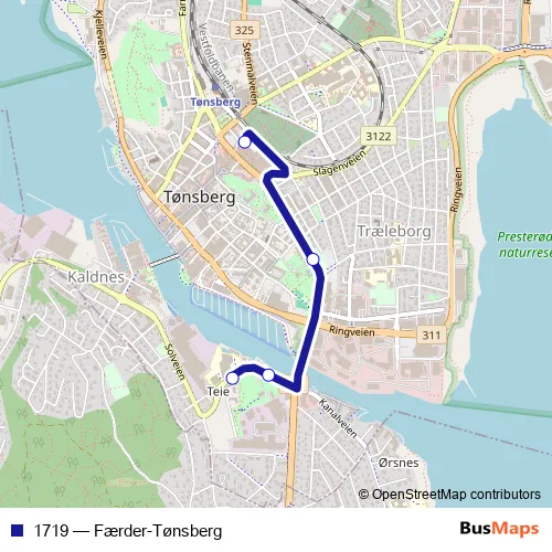 Bus 1719 - Færder-Tønsberg in Tonsberg: Stops & Timetable