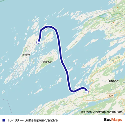 The first stop of the 18-188 ferry route is Solfjellsjøen ferjekai and the last stop is Vandve ferjekai. 18-188 (Solfjellsjøen-Vandve) is operational during hver dag.