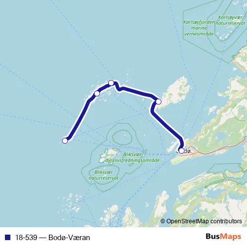 Click here to view the nearest 18-539 - Bodø-Væran ferry stop.