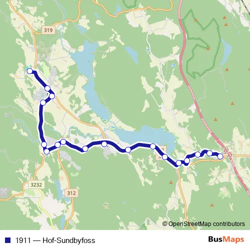 Click here to view the nearest 1911 - Hof-Sundbyfoss bus stop.