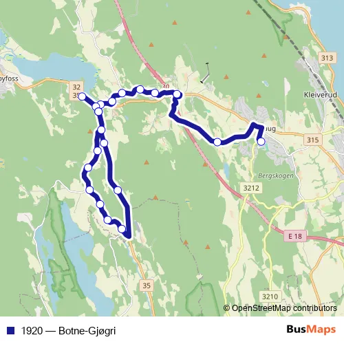 Bus 1920 - Botne-Gjøgri: Full Schedule in Holmestrand