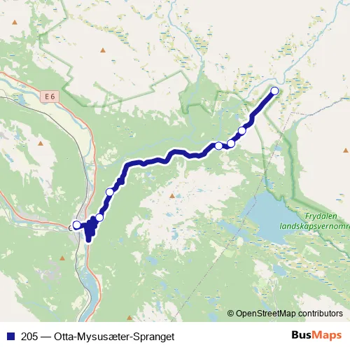 Click here to view the nearest 205 - Otta-Mysusæter-Spranget bus stop.