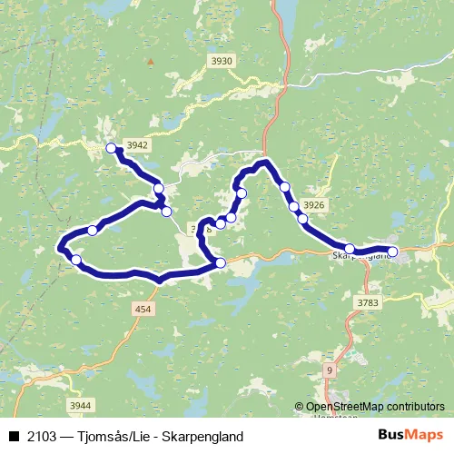 Click here to view the nearest 2103 - Tjomsås/Lie - Skarpengland bus stop.