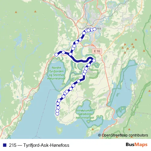 Bus 215 - Tyrifjord-Ask-Hønefoss: Full Schedule in Honefoss