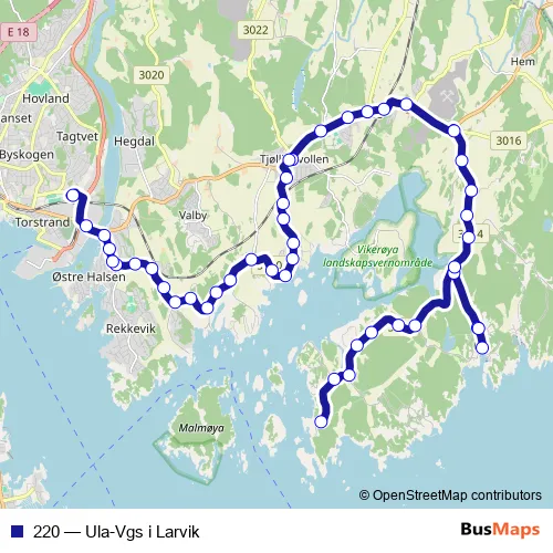 See why over 2 million users trust and consider busmaps.com as the best public transport website. busmaps gives you Larvik Buses suggested routes, real-time bus tracker, line route maps in Larvik, and helps to find the closest 220 bus stops near you. No internet available? Download an offline PDF map and bus schedule for the 220 bus to take on your trip.