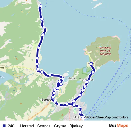 Click here to view the nearest 240 - Harstad - Stornes - Grytøy - Bjarkøy bus stop.