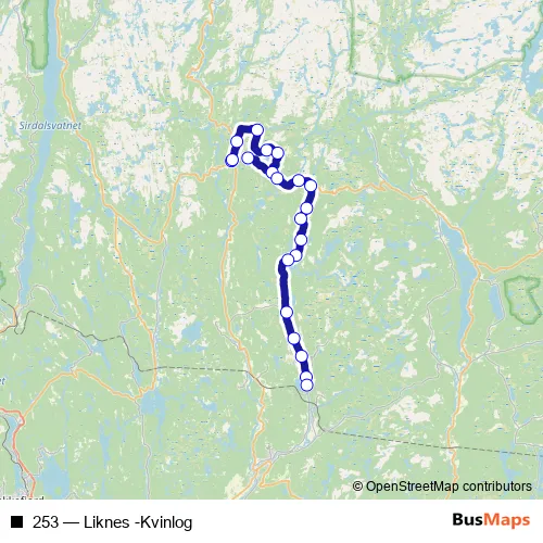 Click here to view the nearest 253 - Liknes -Kvinlog bus stop.