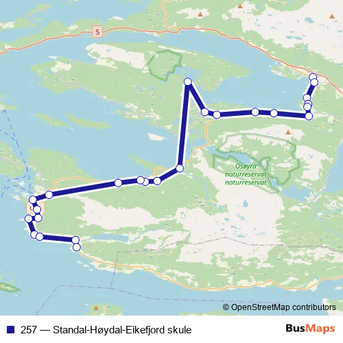 Bus 257 - Standal-Høydal-Eikefjord skule: Full Schedule in Floro