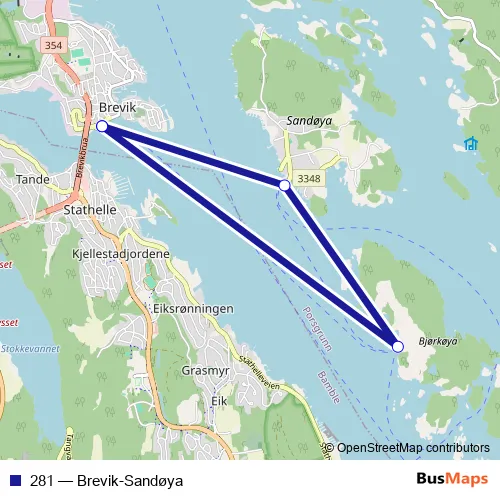 Click here to view the nearest 281 - Brevik-Sandøya ferry stop.