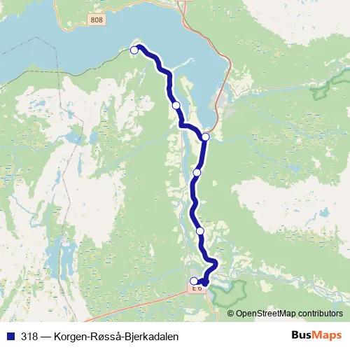 Click here to view the nearest 318 - Korgen-Røsså-Bjerkadalen bus stop.