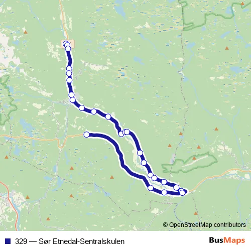 The first stop of the 329 bus route is Etnedal skule and the last stop is Sørum. 329 (Sør Etnedal-Sentralskulen) is operational during på hverdager.