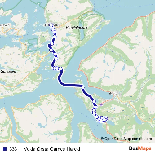 See why over 2 million users trust and consider busmaps.com as the best public transport website. busmaps gives you Ulsteinvik Buses suggested routes, real-time bus tracker, line route maps in Ulsteinvik, and helps to find the closest 338 bus stops near you. No internet available? Download an offline PDF map and bus schedule for the 338 bus to take on your trip.