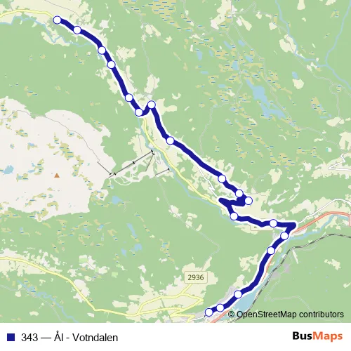The first stop of the 343 bus route is Nordbygdene skule and the last stop is Ål torget. 343 (Ål - Votndalen) is operational during på hverdager.