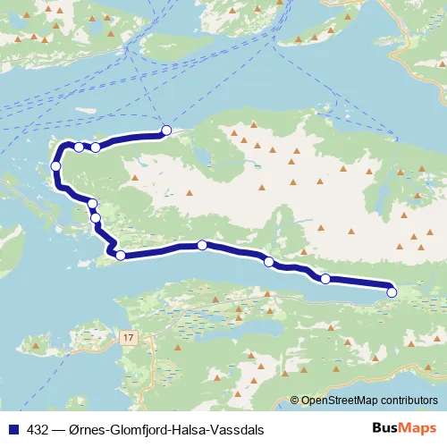 Click here to view the nearest 432 - Ørnes-Glomfjord-Halsa-Vassdals bus stop.