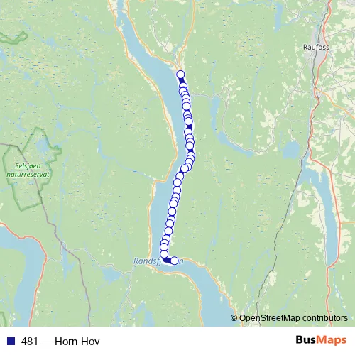 The first stop of the 481 bus route is Hov sentrum sørgående and the last stop is Horn ferjekai. 481 (Horn-Hov) is operational during på hverdager.
