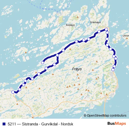 The first stop of the 5211 bus route is Sistranda skole and the last stop is Nordskag. 5211 (Sistranda - Gurvikdal - Nordsk) is operational during på hverdager.