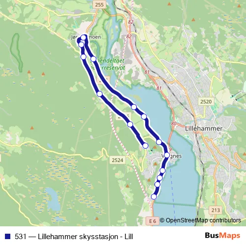 Bus 531 - Lillehammer skysstasjon - Lill in Lillehammer: Stops & Timetable