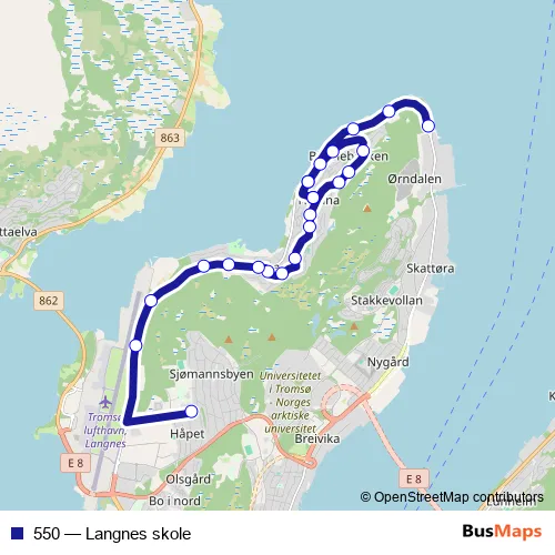 Bus 550 - Langnes skole Schedule in Tromso