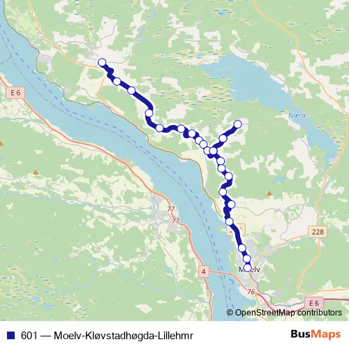 Click here to view the nearest 601 - Moelv-Kløvstadhøgda-Lillehmr bus stop.