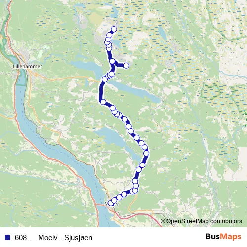 Bus 608 - Moelv - Sjusjøen in Lillehammer: Stops & Timetable