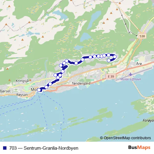 See why over 2 million users trust and consider busmaps.com as the best public transport website. busmaps gives you Molde Buses suggested routes, real-time bus tracker, line route maps in Molde, and helps to find the closest 703 bus stops near you. No internet available? Download an offline PDF map and bus schedule for the 703 bus to take on your trip.