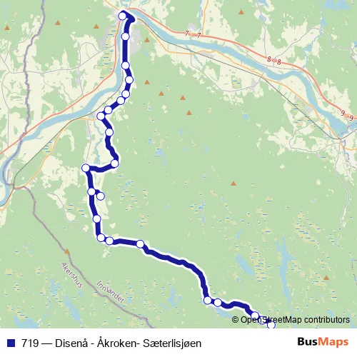 Bus 719 - Disenå - Åkroken- Sæterlisjøen Schedule in Skarnes
