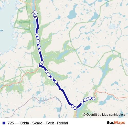Click here to view the nearest 725 - Odda - Skare - Tveit - Røldal bus stop.