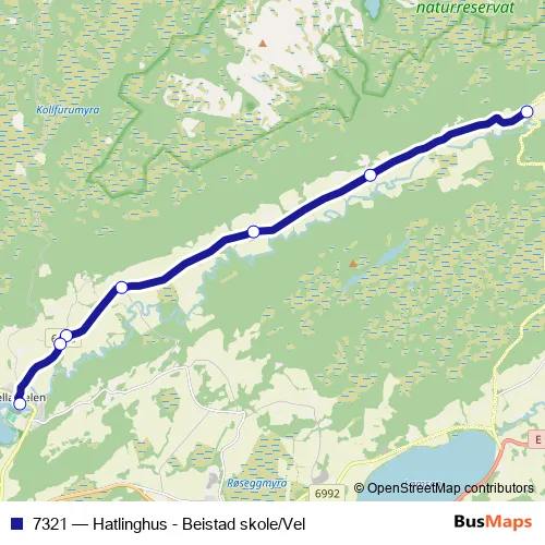 Click here to view the nearest 7321 - Hatlinghus - Beistad skole/Vel bus stop.