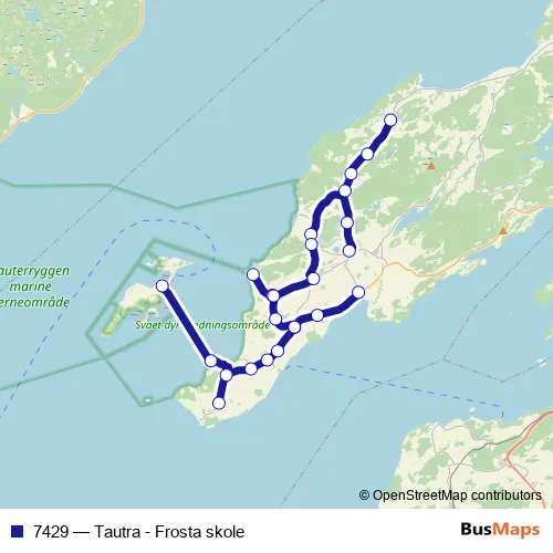 The first stop of the 7429 bus route is Frosta skole and the last stop is Tautra. 7429 (Tautra - Frosta skole) is operational during på hverdager.