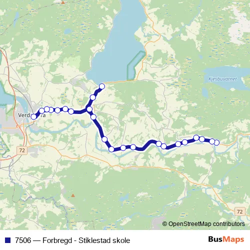The first stop of the 7506 bus route is Vuku skole and the last stop is Verdal stasjon. 7506 (Forbregd - Stiklestad skole) is operational during på hverdager.